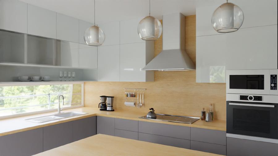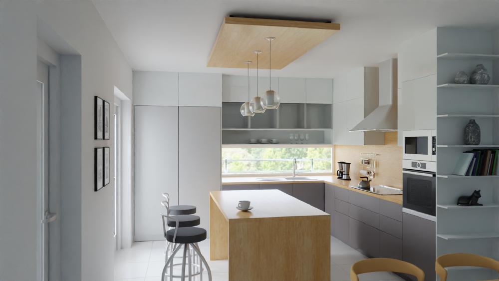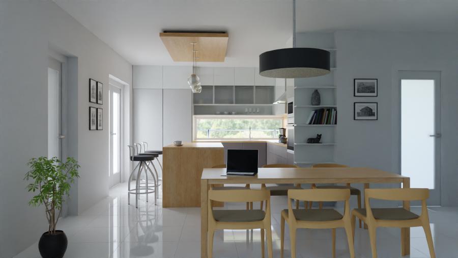 A házfelújításhoz szükséges terveket Mónika és Tamás készítették el, az én feladatom ennél a projektnél egy modern, letisztult, de mégis barátságos és jól használható konyha tervezése volt.